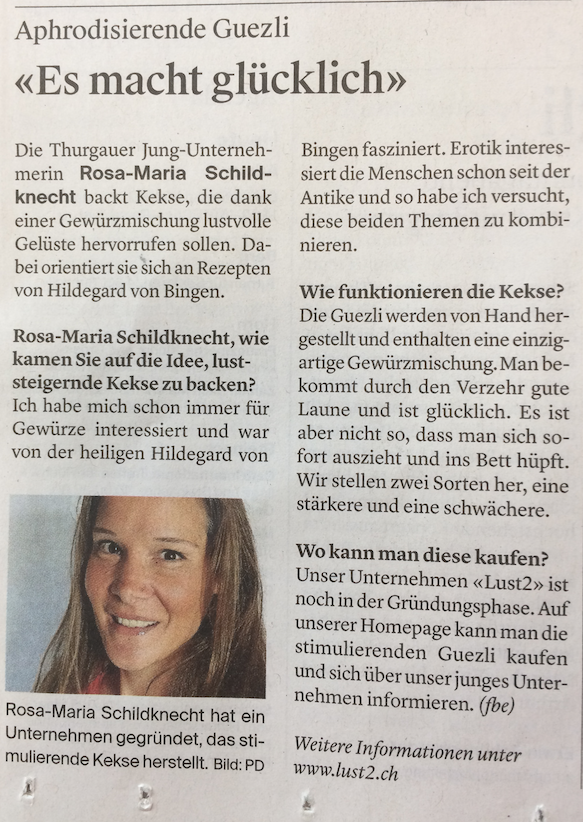 Wir beschäftigen uns seit siebzehn Jahren mit der Lehre der Heiligen Hildegard von Bingen und sind von der Subtilität und des breiten Anwendungsbereiches der Gewürze, Kräuter und Lebensmittel fasziniert. In mehreren Selbstversuchen, Studien und Feldforschungen hat sich die Leidenschaft für Aphrodisierenden Lebensmittel und Kräuter herauskristallisiert.